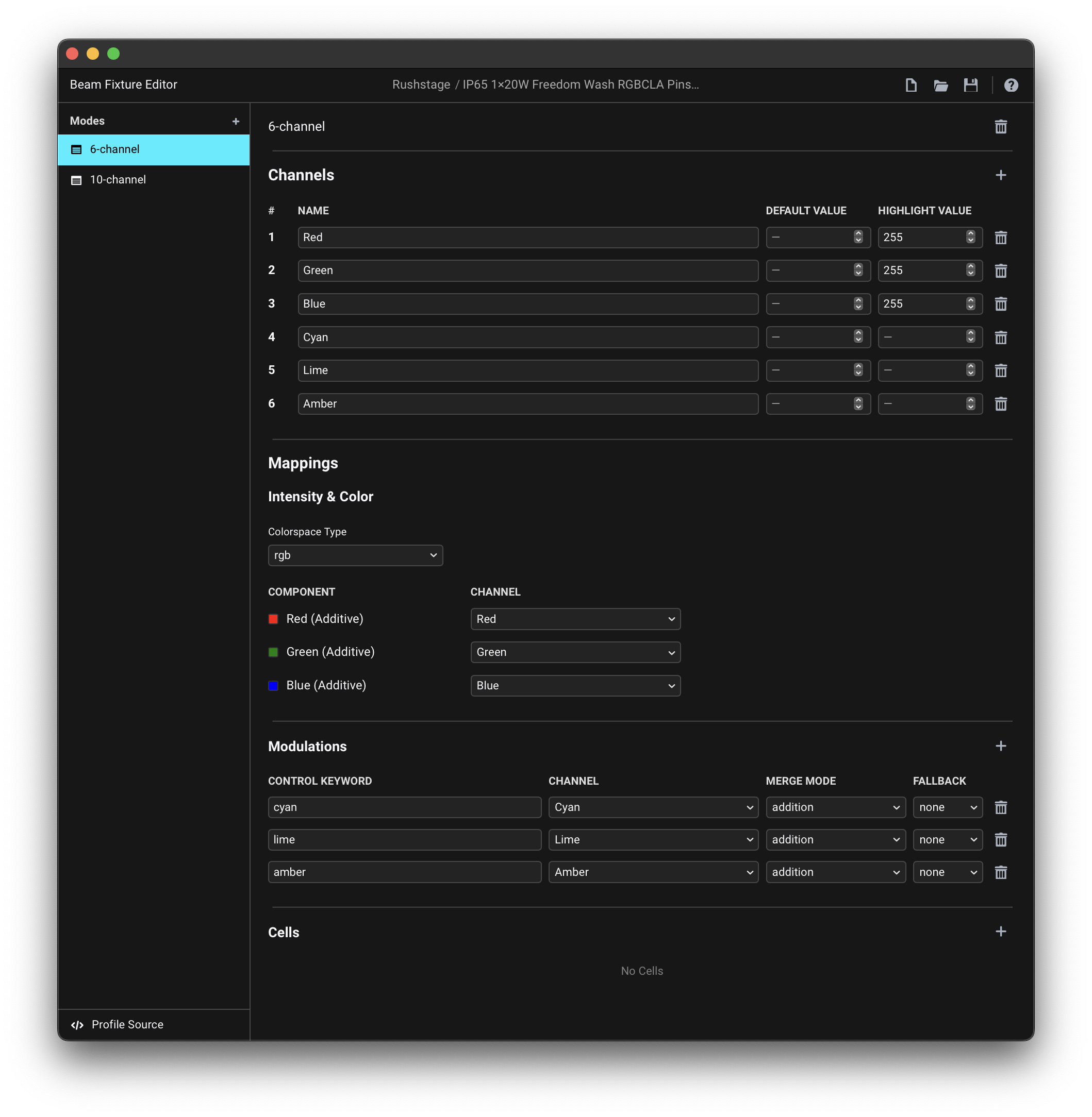 I have a non-referenced fixture with 6 colors: Red, Green, Blue, Cyan, Lemon, and Amber.