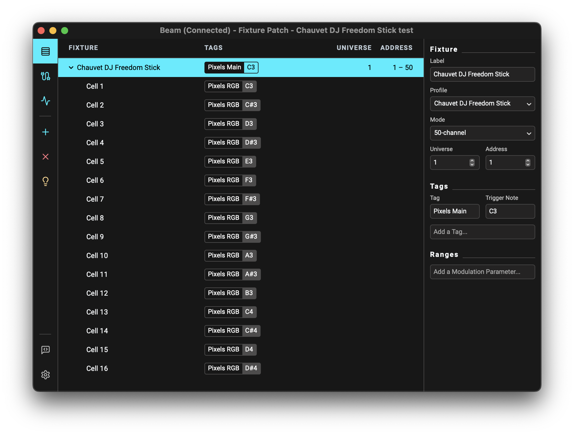 The reason why you are not experiencing with Beam 1.x has to do with changes to the way color and intensity are handled in Beam 2, especially when it comes to fixtures with cells or children, such as your Freedom Sticks. While it’s great that you’ve been able to make things work this way, it is actually by luck and Beam 1.x’s inconsistent color handling that this worked