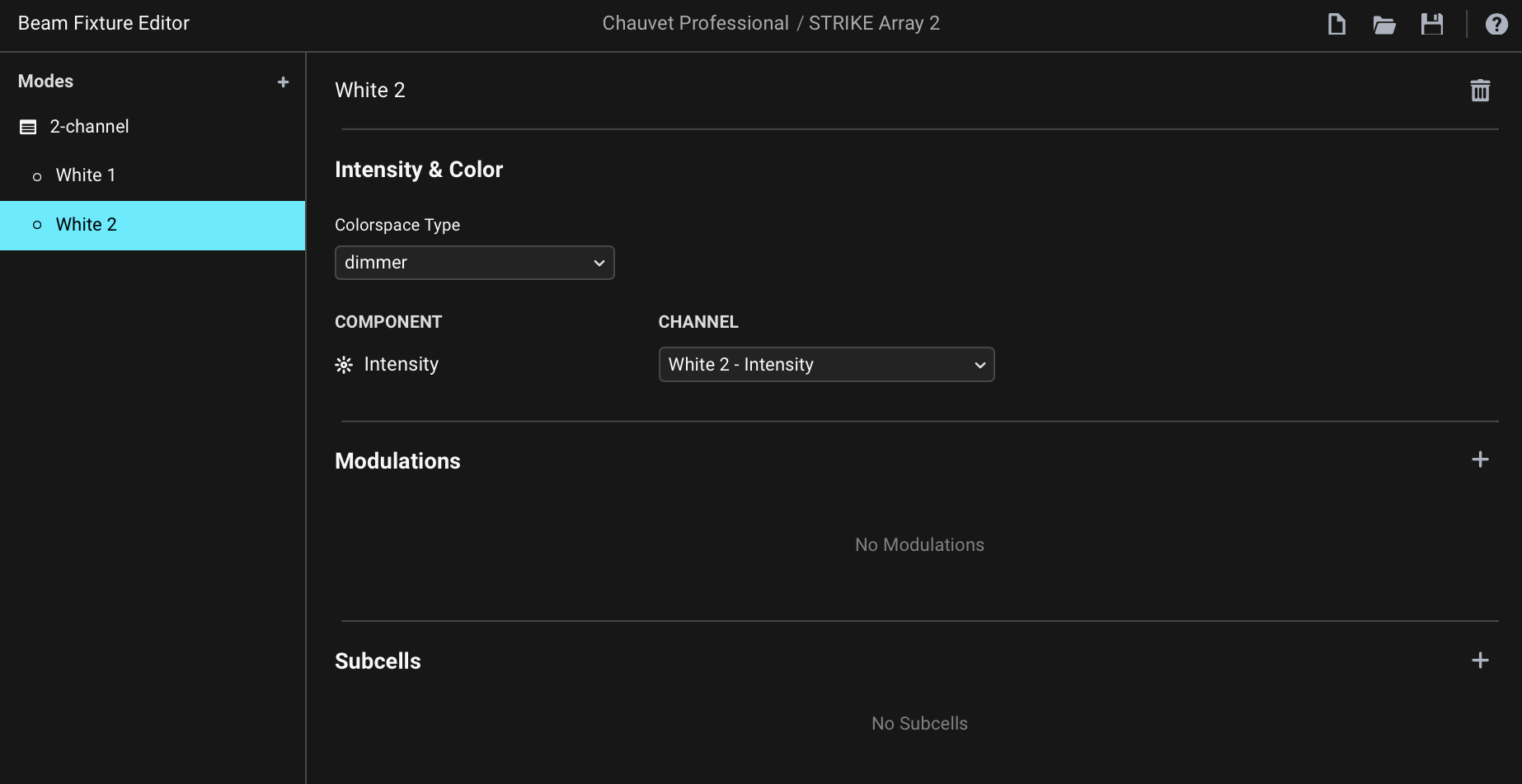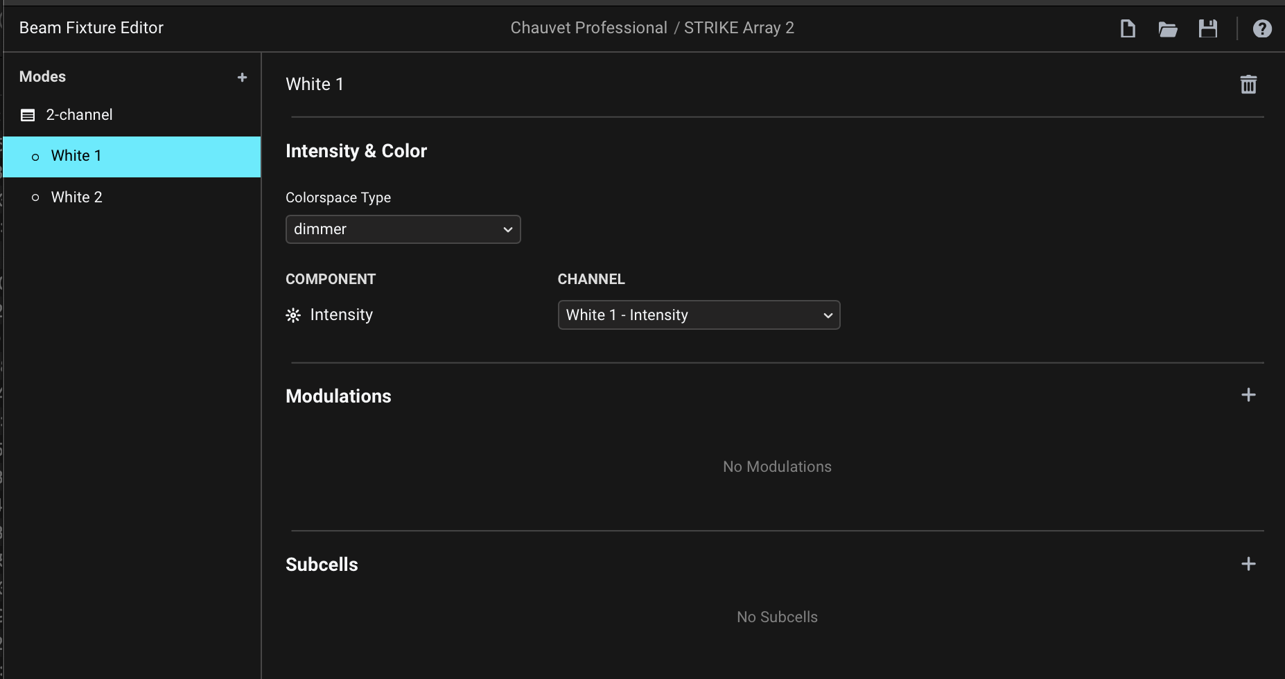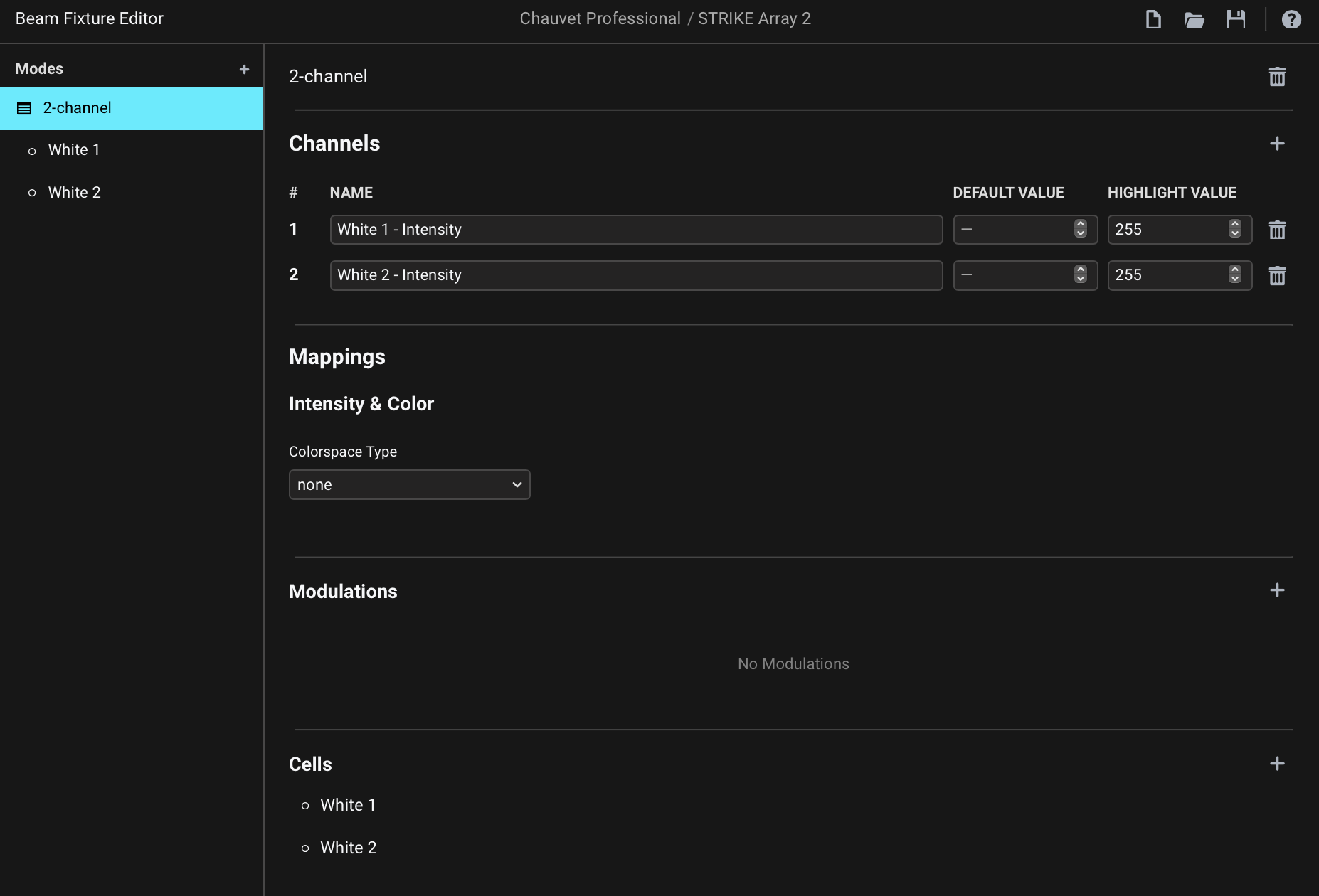 In this case - I just recently worked with STRIKE Array 2, so here is the fixture profile for the 2-channel mode: Chauvet Professional STRIKE Array 2.sbf (1.2 KB)