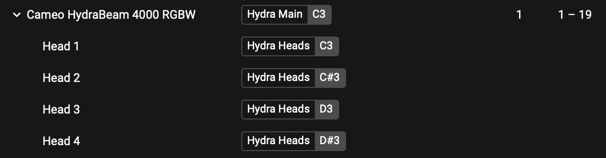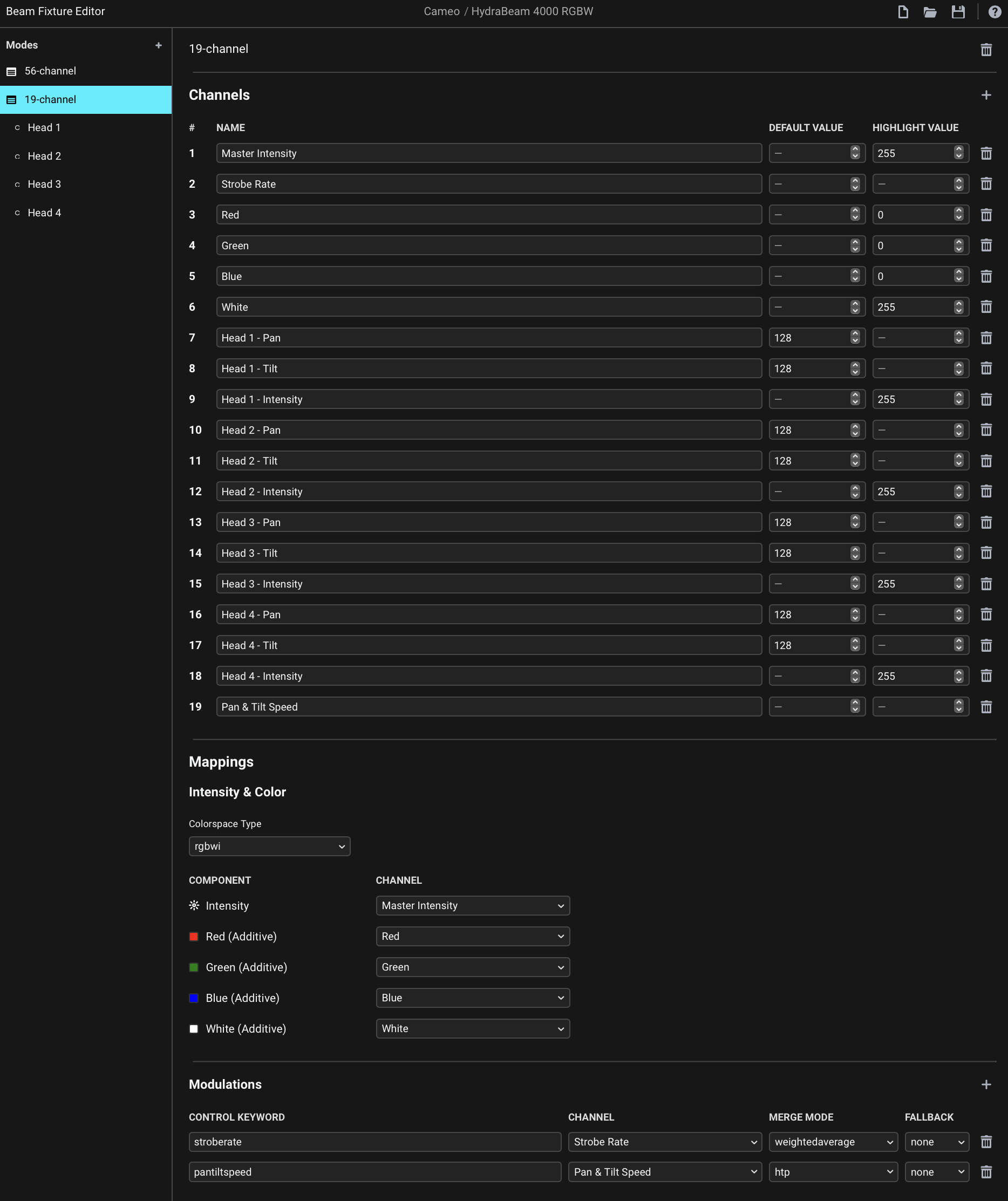 As far as the 19-channel goes, this is how you would approach making a fixture profile for it: