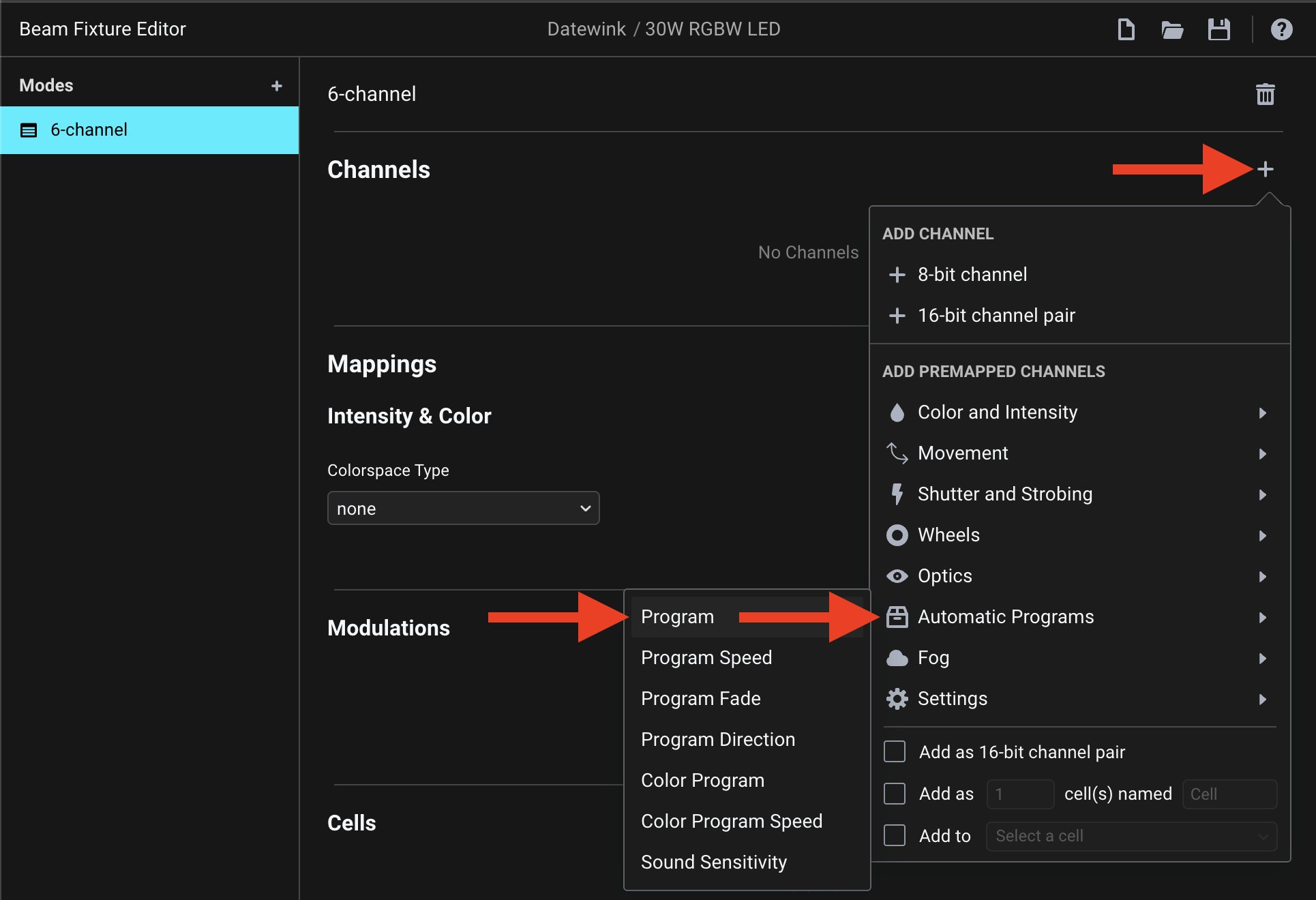 Now we just need to add the 6th channel, which we can take a different Automatic Program for. I chose the Color Program in this case, as this channel specifically seems to control color effects (as opposed to the first channel). In the end it doesn’t really matter which of the Automatic Programs you choose, but it helps to pick one that describes the channel’s function the best way: