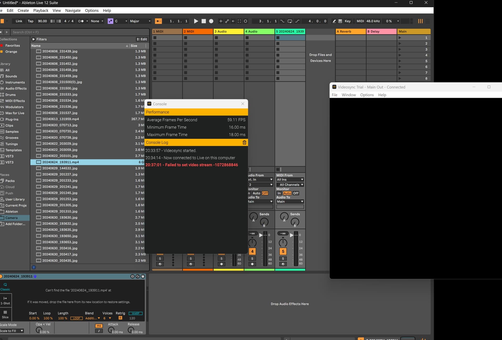 If you use any videos from User Library/Videosync/Video Samples, does the video load and play as expected?
