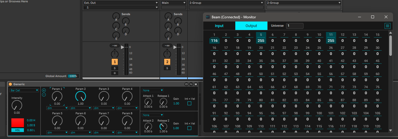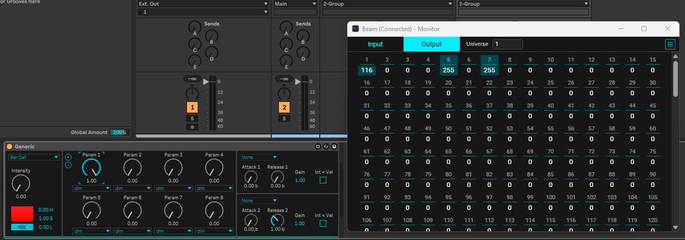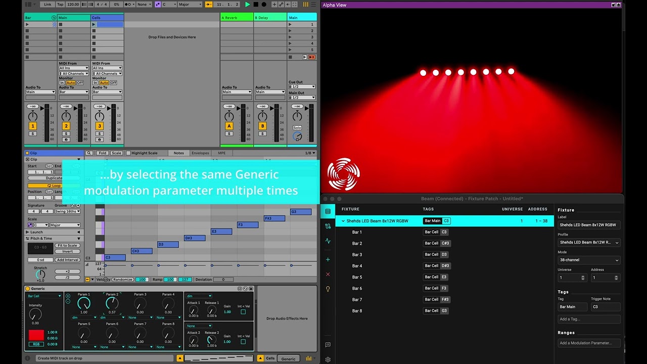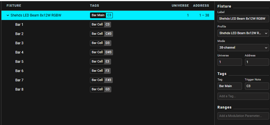 I managed to turn on the beam and do some tilt control using generic instrument in Ableton using Beam plugin, but I can’t seem to figure out how to control individual lights in my beam. For example, I want to turn on left 3 beams out of 8 beams that is part of the Shehds LED Beam 8x12 RGBW.
